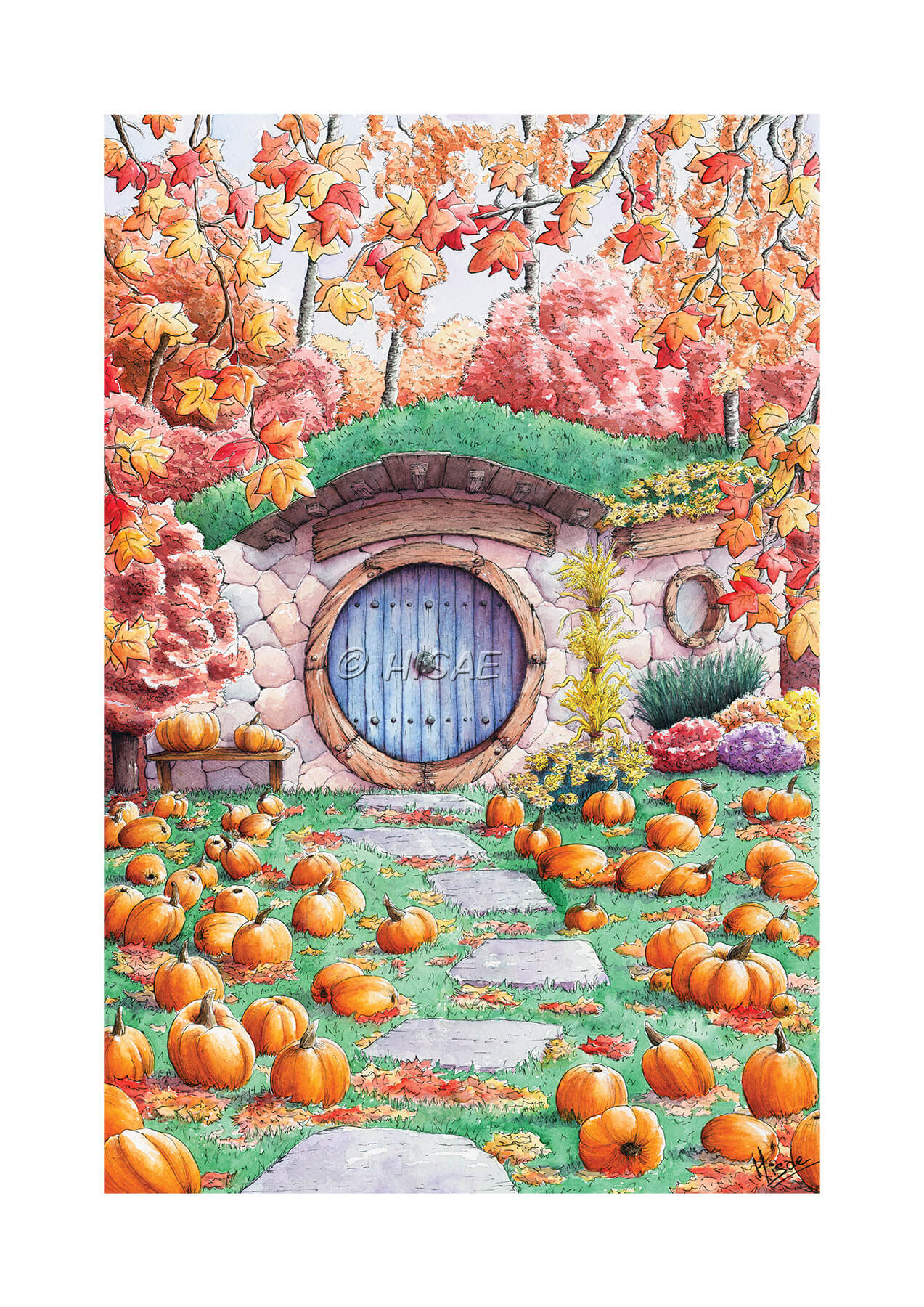 Vous aimez l’automne et les citrouilles? Découvrez sans tarder La citrouille magique et les marque-page Les citrouilles! Et pour les fans de Tolkien il existe une autre aquarelle en lien avec la Terre du Milieu dans la boutique: La maison de Hobbit!