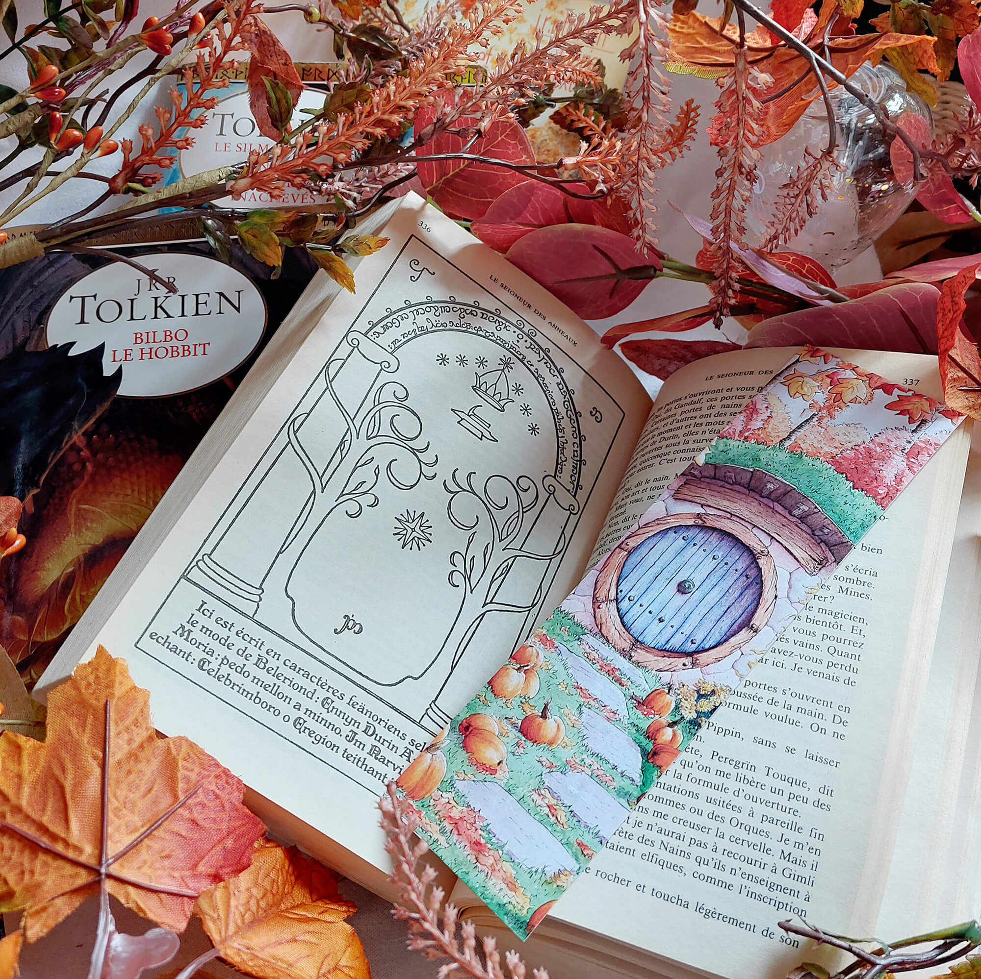 Je vous invite aujourd’hui dans un voyage littéraire, au cœur de l’œuvre de Tolkien. Et pour ne pas perdre votre page, rien de tel que ce marque-page original aux couleurs de la Comté en automne. Imprimé recto/verso à partir d’un dessin à l’aquarelle, il vous accompagnera dans toutes vos aventures littéraires!